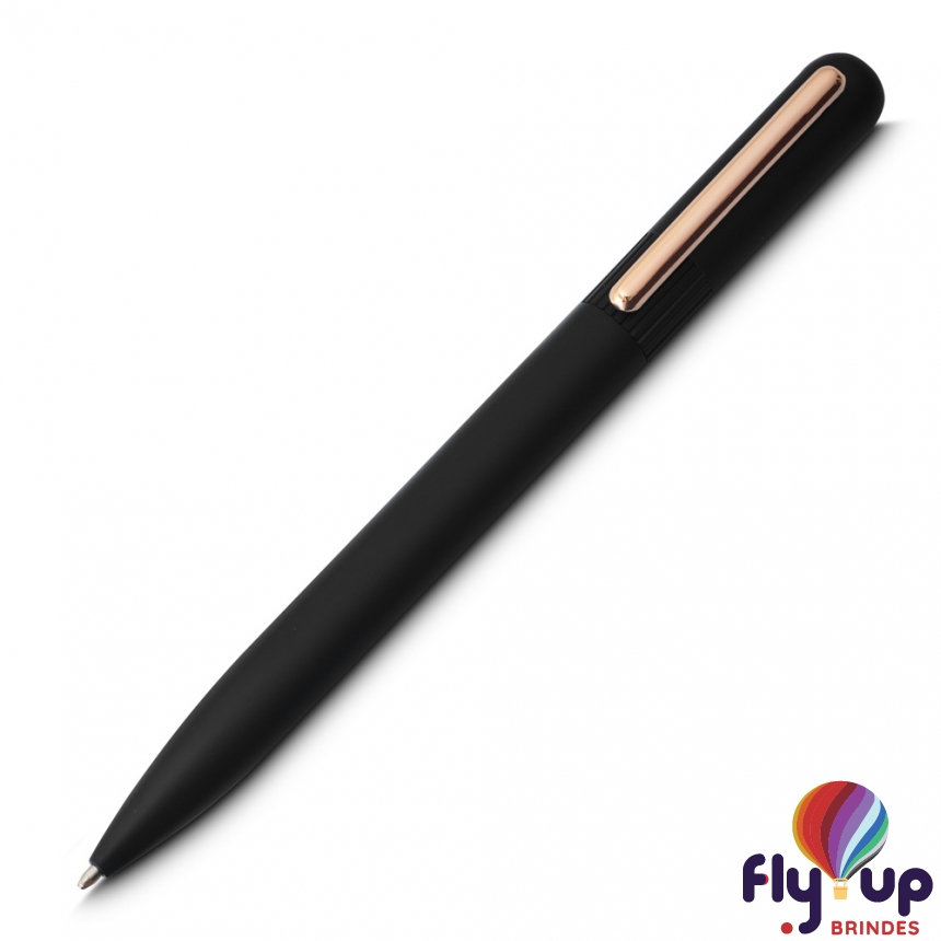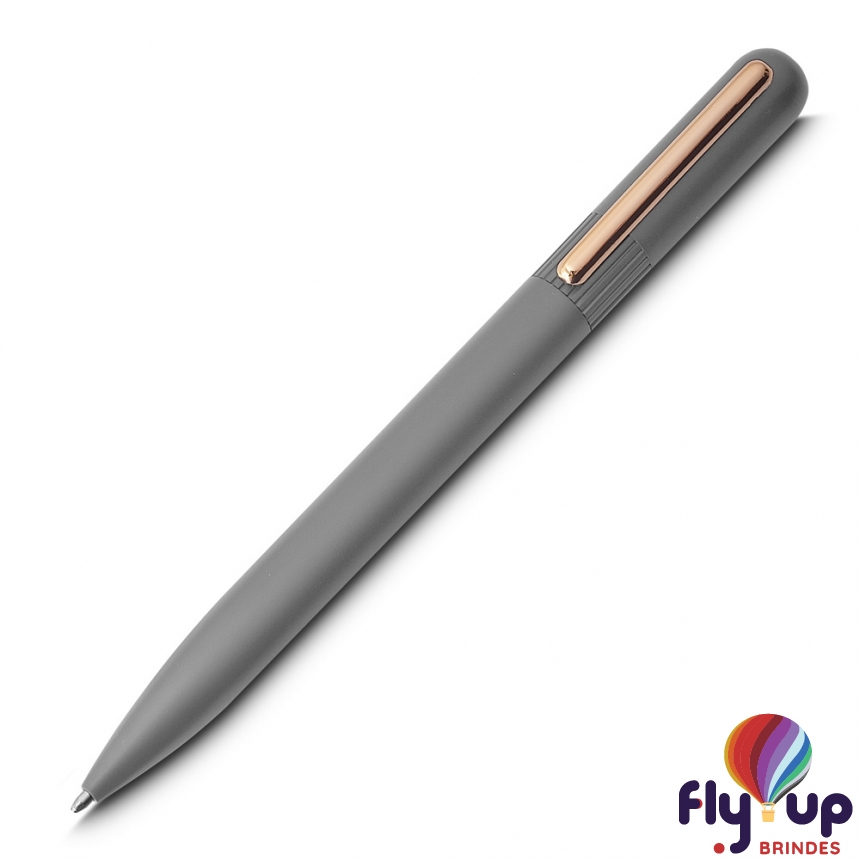 Caneta Metálica Caneta esferográfica em alumínio com clip em latão reciclável e escrita azul. Combina design sofisticado, resistência e responsabilidade ambiental.